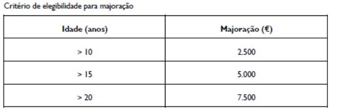 Caso o candidato entregue um veículo para abate, o valor unitário da unidade de incentivo é majorado desde que o veículo tenha licença para serviço de táxi nos últimos 3 anos e tenha pelo menos 20.000 quilómetros percorridos no último ano (a apurar pela entidade gestora do Fundo para o Serviço Público de Transportes, ao IMT). A majoração a atribuir de acordo com a idade do veículo de acordo com o seguinte: